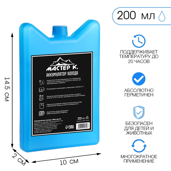 Аккумулятор холода гелевый "Мастер К", 200 мл, хладоэлемент для термосумок, 14.5 х 10 х 2 см