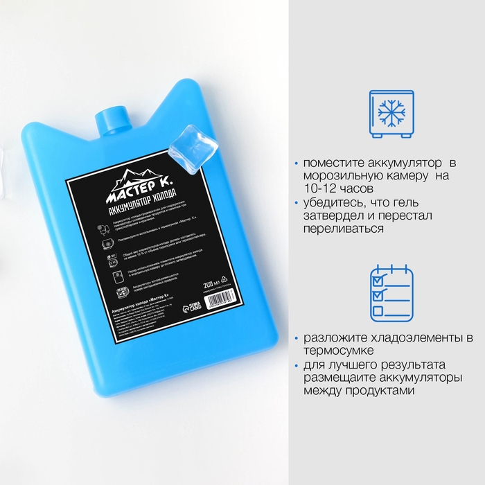 Аккумулятор холода - гелевый хладоэлемент для термосумки "Мастер К.", до 20 ч, 300 мл