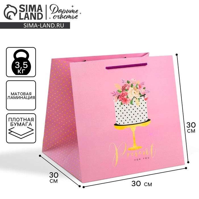 Квадратный пакет «Подарок для тебя», 30 х 30 х 30 см