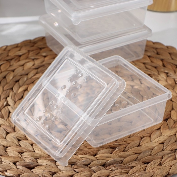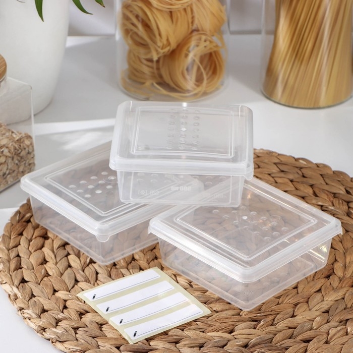 Набор контейнеров предназначен для заморозки и хранения различных продуктов: овощей, ягод, зелени и полуфабрикатов. Контейнеры можно ставить друг на друга, эффективно используя пространство.