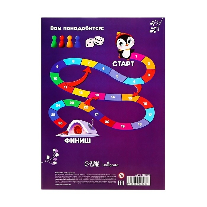 Картон белый А4, 8 листов "Каляка-Маляка", немелованный