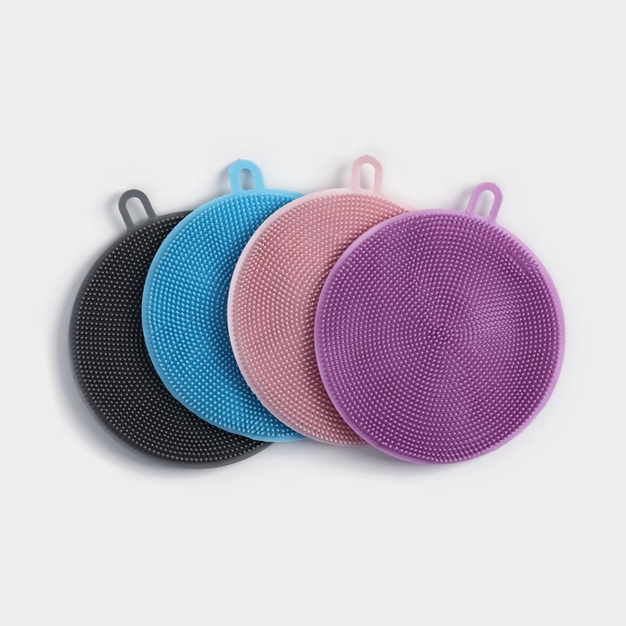 Губки для посуды Доляна, 2 шт, силиконовые, 11×11×1 см, цвет МИКС