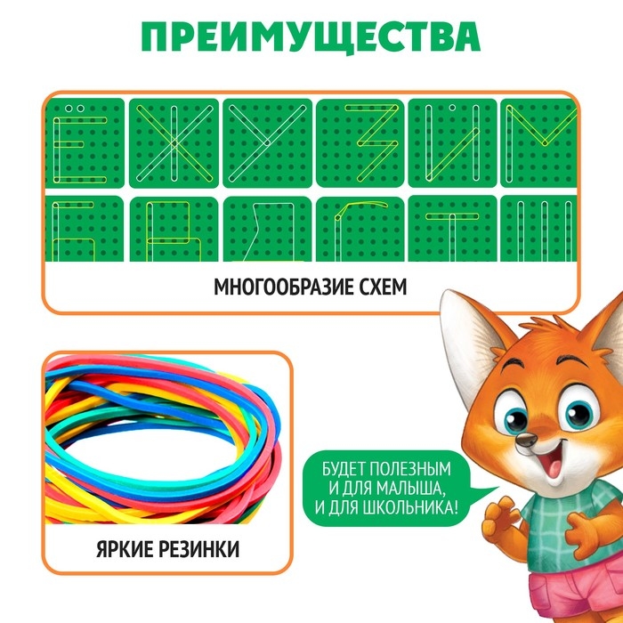 Геоборд «Математический планшет: Алфавит и цифры» с инструкцией по схемам, по методике Монтессори