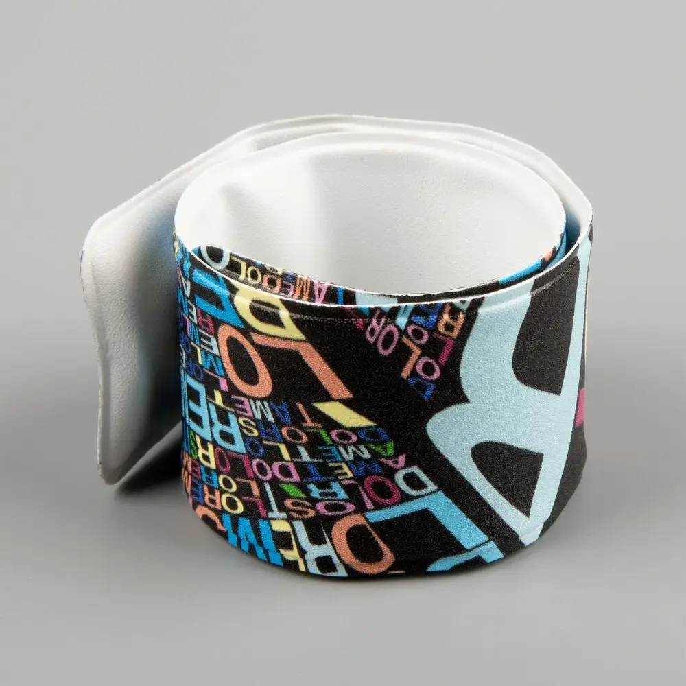 Слэп-браслет (от англ. slap — «хлопать») из ПВХ — броский и запоминающийся промопродукт. В открытом виде браслет плоский, и его можно использовать, к примеру, в качестве книжной закладки. Но стоит слегка ударить им о запястье, и он тут же скручивается по форме руки. Пригодится на массовых мероприятиях, тимбилдингах или промоакциях.