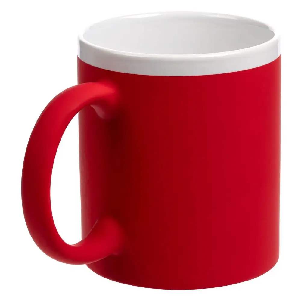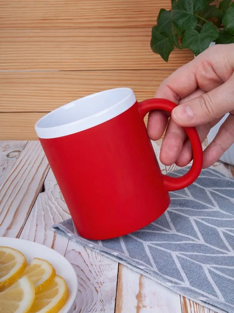 Кружка классической формы StopSpot привлекает внимание своим дизайном и покрытием. Яркая матовая поверхность выигрышно контрастирует с глянцевым белым ободком — так кружка выглядит необычно, а еще меньше пачкается во время эксплуатации.