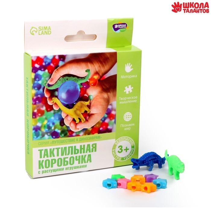 Тактильная коробочка «Путешествие к динозаврам», с растущими игрушками