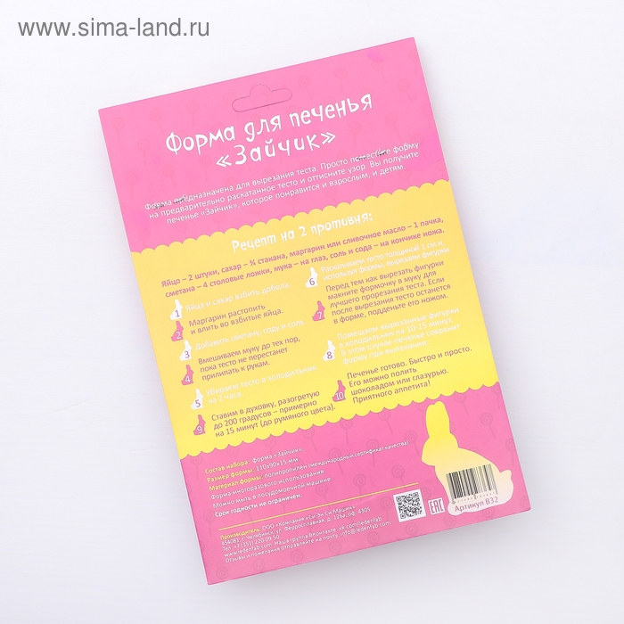 Форма для печенья «Зайчик», вырубка, штамп, цвет МИКС