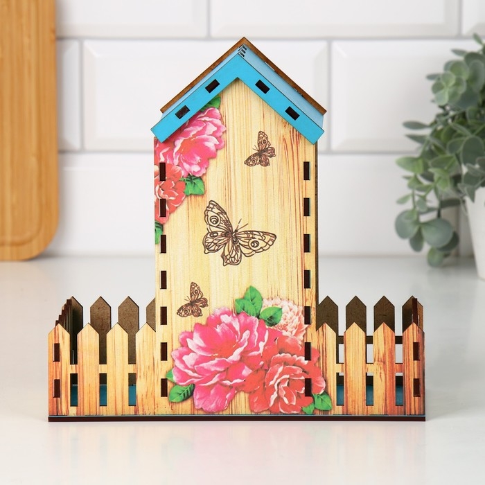 Домик выполнен из материала ХДФ, а красочность рисунка задаётся благодаря оклейке полиграфией.