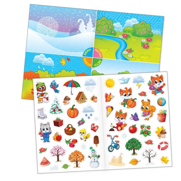 С многоразовыми наклейками обучение превратится в интересное занятие. Играйте вместе с ребёнком, разгадывайте загадки и изучайте времена года и погодные условия.