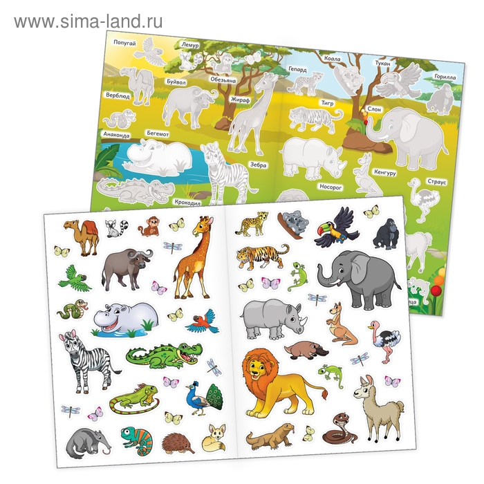 Наклейки многоразовые «Животные жарких стран», формат А4