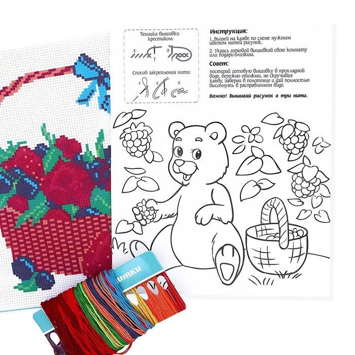 Вышивка с красивым рисунком и цветной схемой — то, что нужно малышу, чтобы освоить новое хобби!
