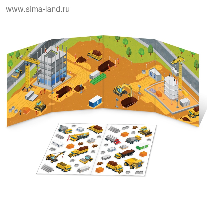 Наклейки многоразовые «Машины на стройке», книжка-раскладушка