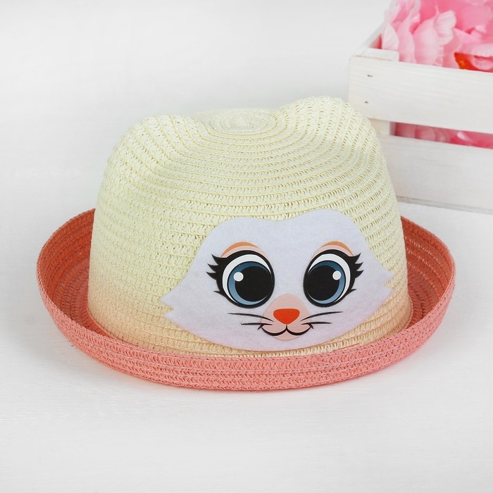 Панама детская соломенная для девочки «Кисуля», р-р 54, 2-5 лет