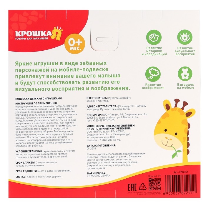 Яркие игрушки в виде забавных персонажей на мобиле - подвеске привлекут внимание вашего малыша и будут способствовать развитию его визуального восприятия, координации движений, мелкой моторики и воображения