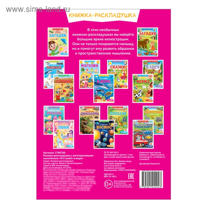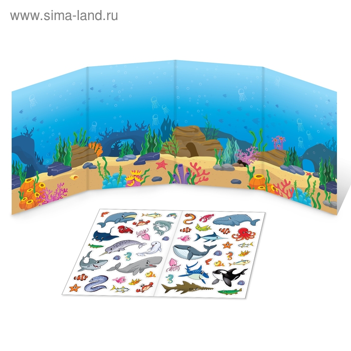 Наклейки многоразовые «Кто живёт в море», книжка-раскладушка