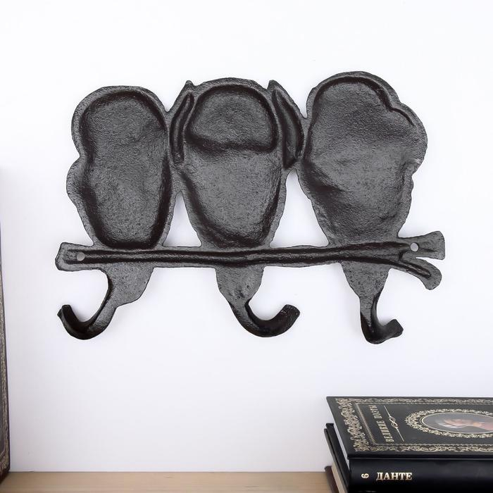 Крючки декоративные чугун "Филины не слышу, не вижу, не скажу" 15,5х23х2,5 см