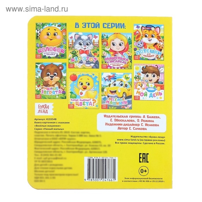 Книга картонная с глазками «Весёлые машинки», 10 стр.