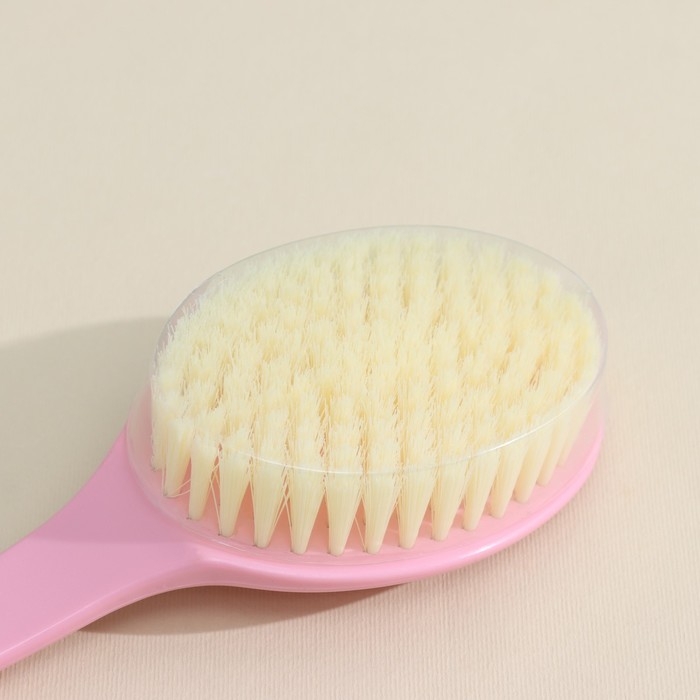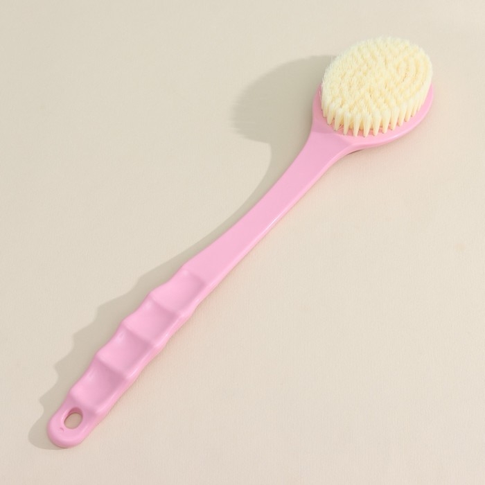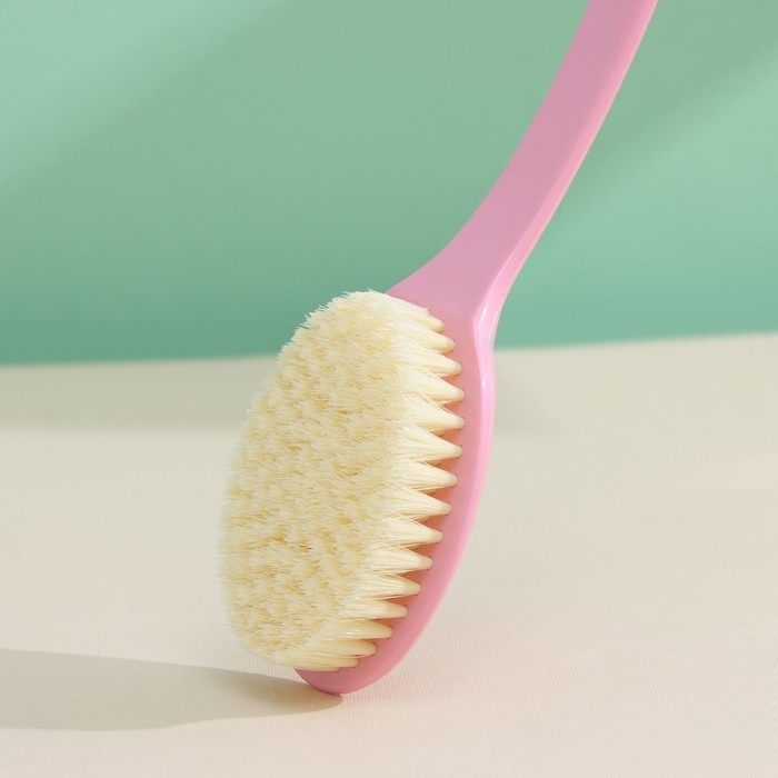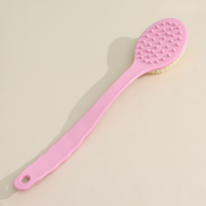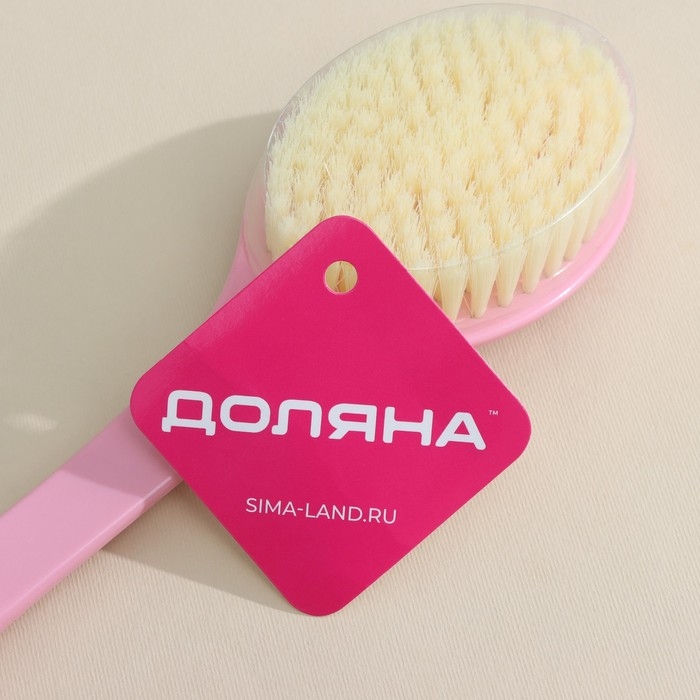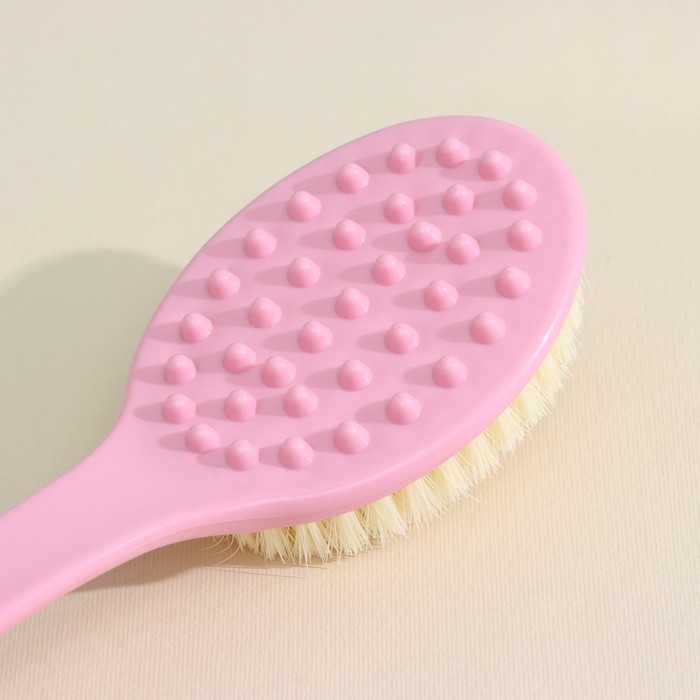 Щётка массажная для тела Доляна, с ручкой и массажёром, искусственная щетина, цвет розовый