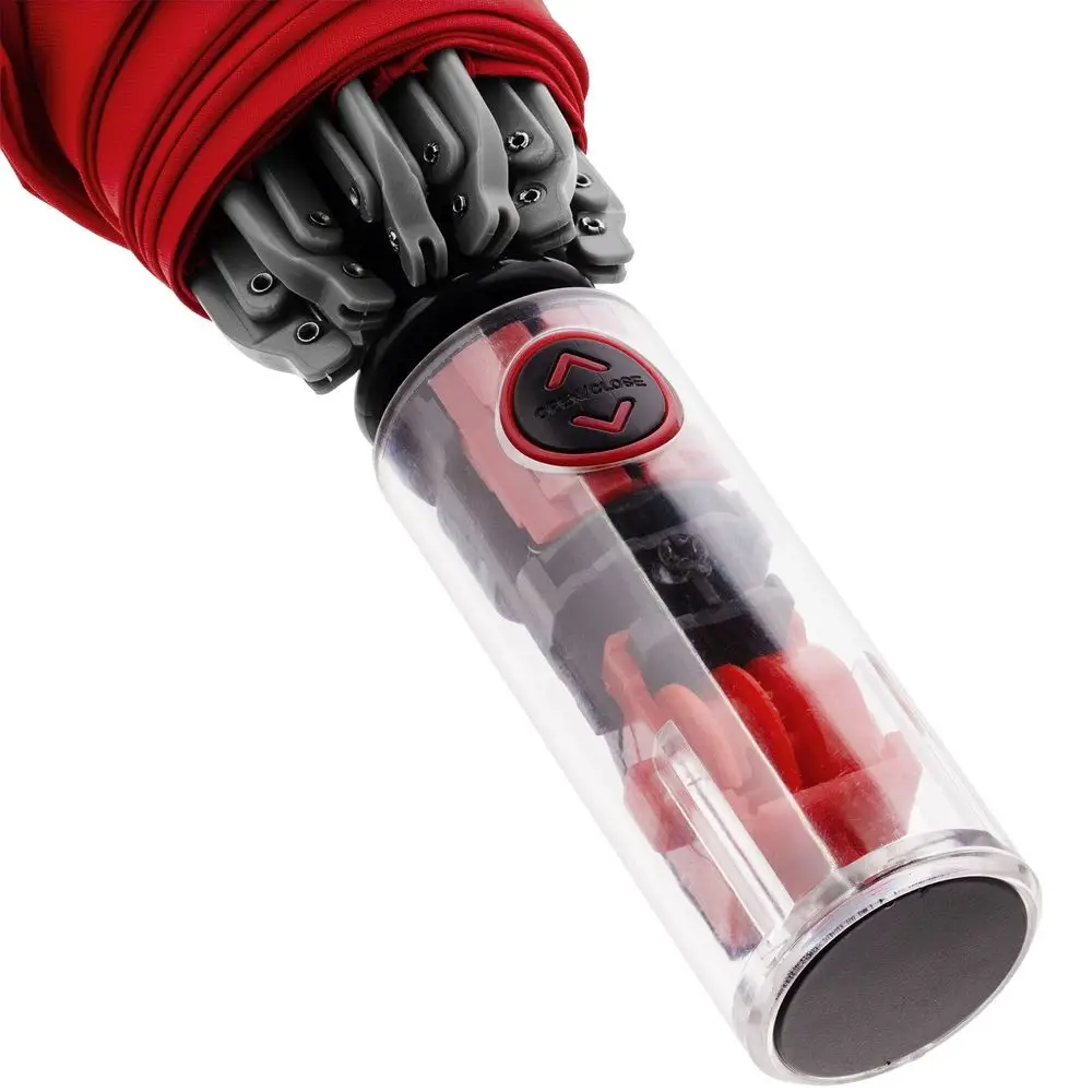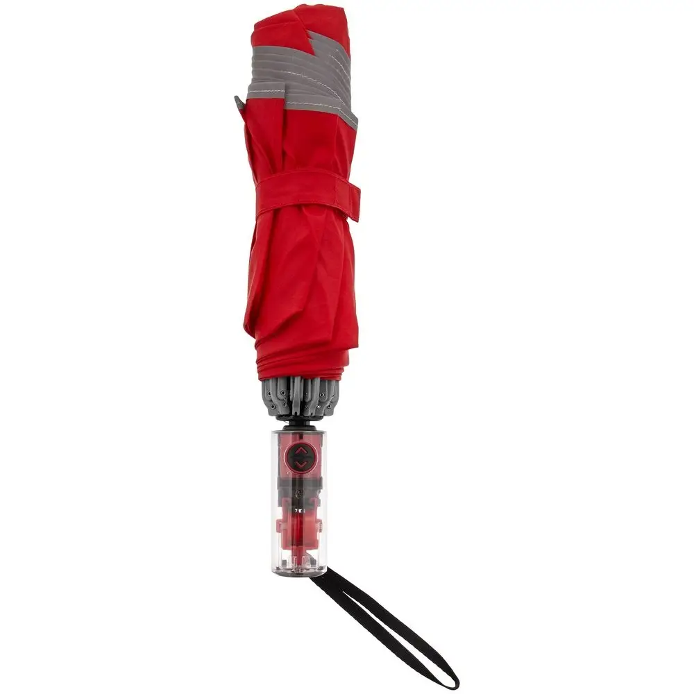 Складной зонт Futurum привлекает внимание оригинальным дизайном. Складываясь после дождя, он прячет мокрую поверхность в себя, а сухая остается снаружи.Светоотражающий кант и ручка из прозрачного пластика, не скрывающая ярких деталей внутри, добавляют внешнему виду зонта футуристичности.