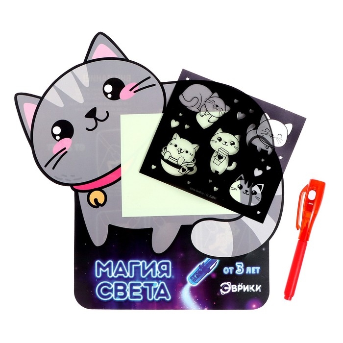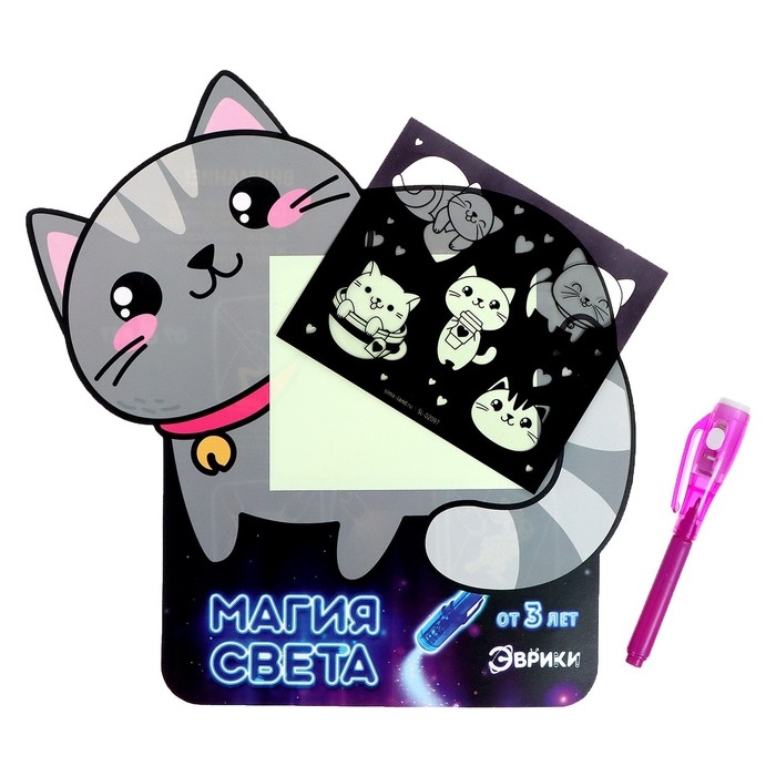 Набор для рисования светом «Котёнок», А5, ручка с фонариком и невидимыми чернилами