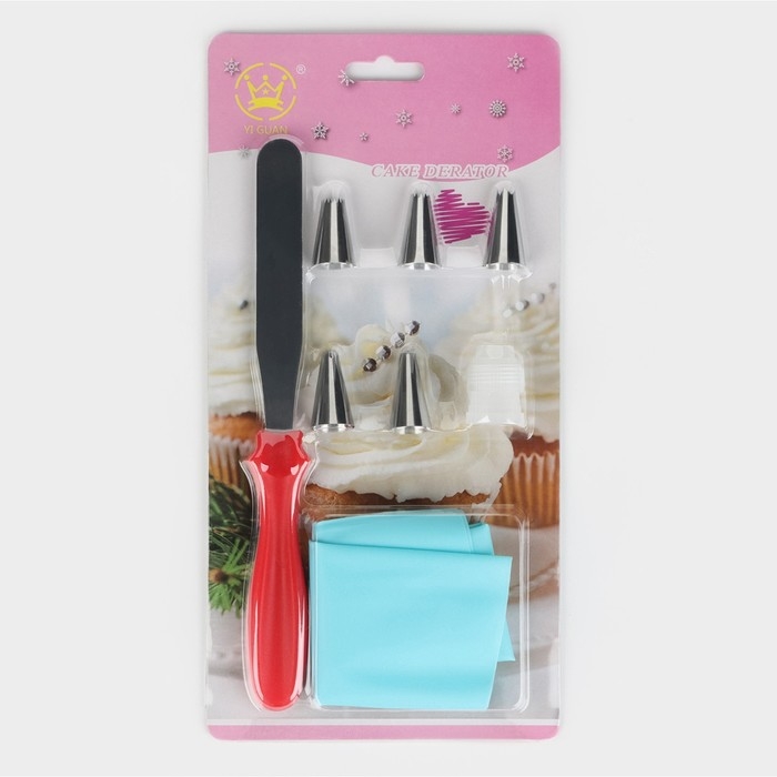 Набор кондитерский, 8 предметов: 5 насадок, адаптер, мешок, шпатель, насадки, цвет МИКС