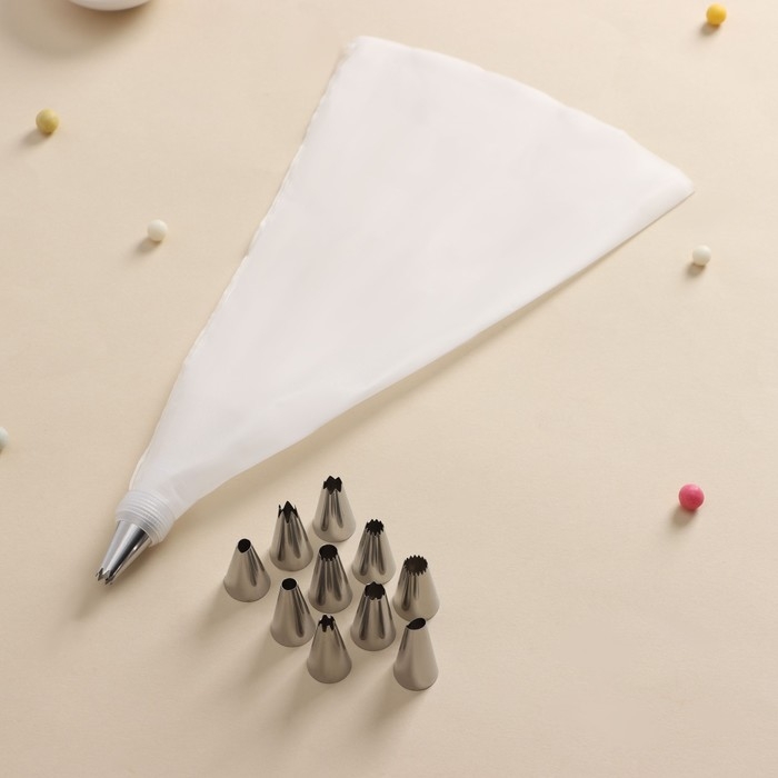 Набор кондитерский Доляна, 11 предметов: 10 насадок, мешок, цвет МИКС