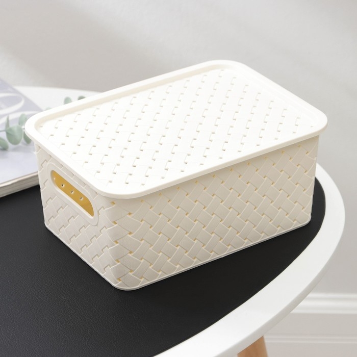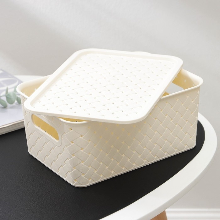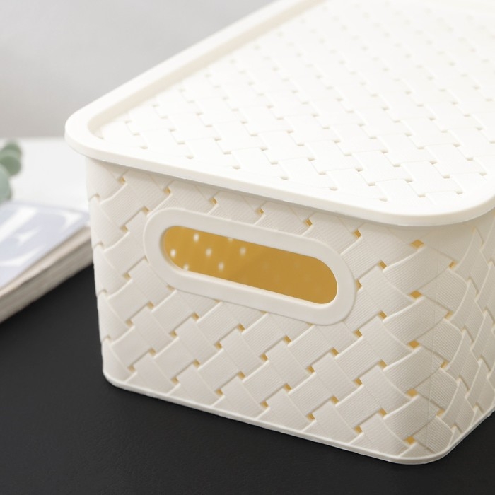 Корзина для хранения с крышкой Виолет «Береста», 3 л, 23,5×17,3×10,5 см, цвет слоновая кость