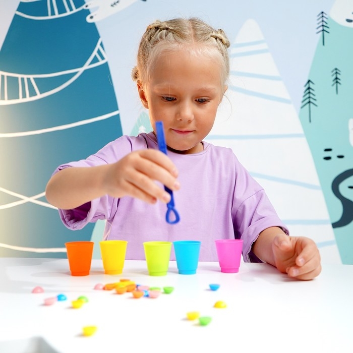 Набор для сортировки «Стаканчики», с пинцетом, по методике Монтессори, 3+