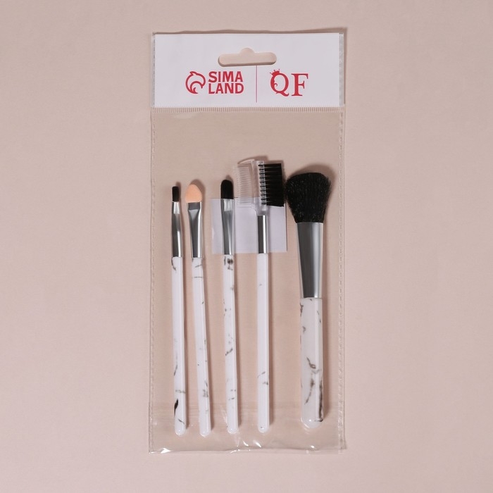 Набор кистей для макияжа «Мрамор», 5 предметов, цвет белый/чёрный