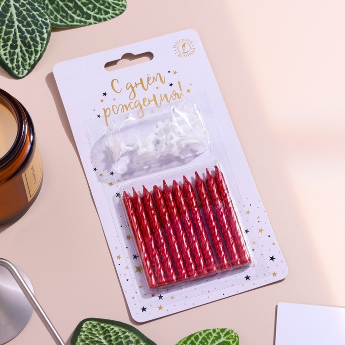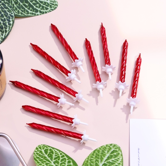 Свечи в торт "Спираль", 6 см, рубиновые, набор 10 шт