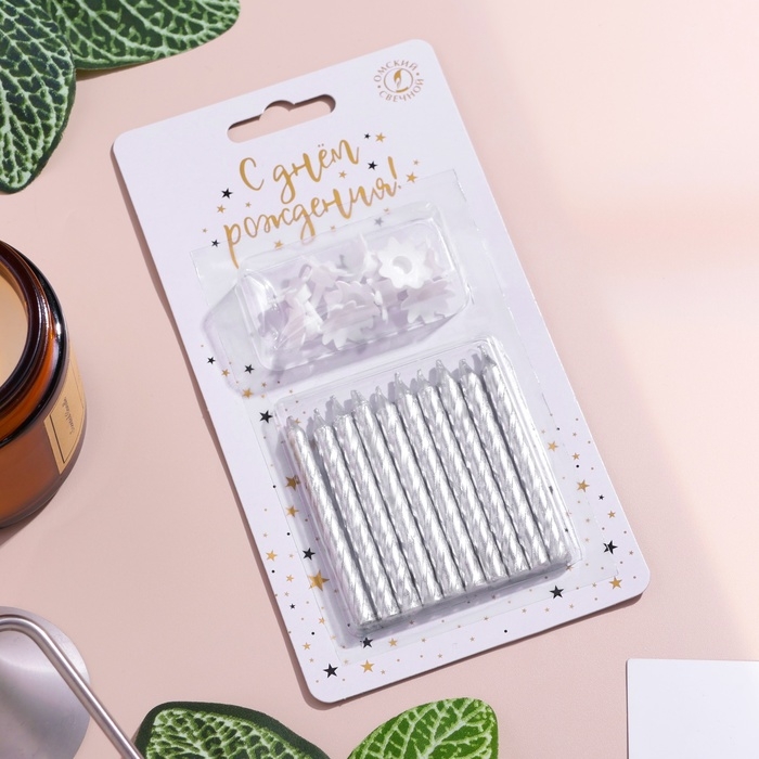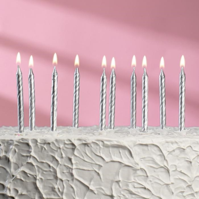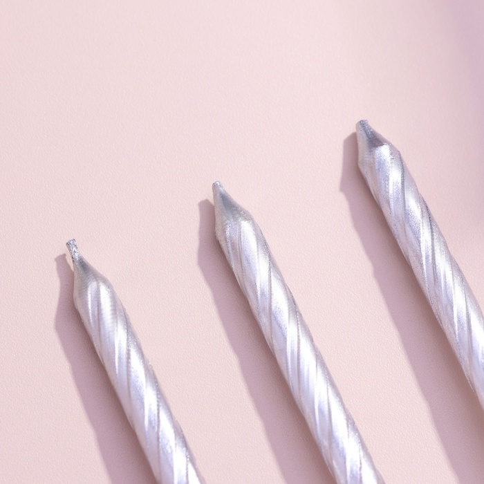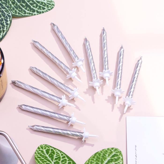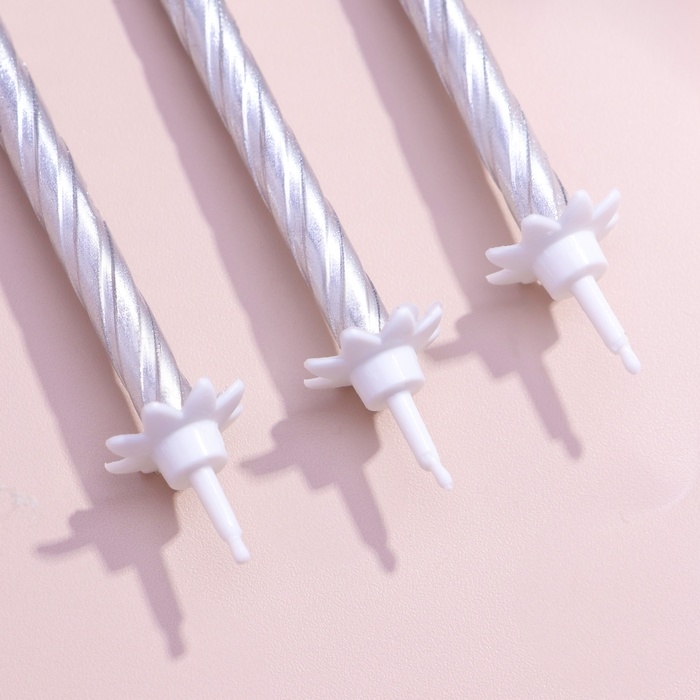 Свечи в торт "Спираль", 6 см, серебряные, набор 10 штук