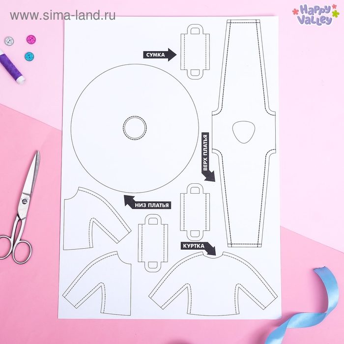 В набор входят лекала будущей одежды, ткань и инструкция с основами швейного мастерства.