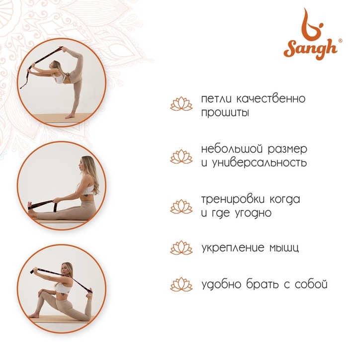Ремень для йоги Sangh Flowers, 180х4 см, цвет бежевый