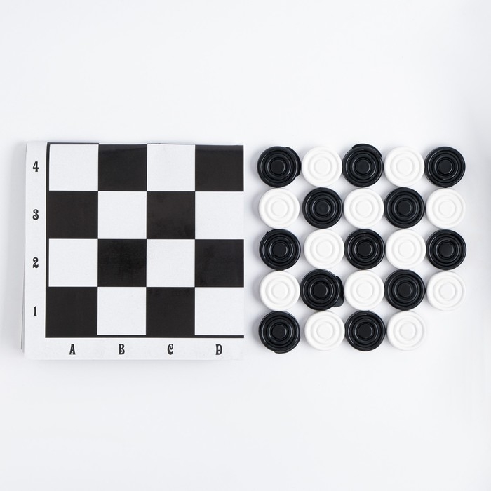 Шашки, настольная игра, поле винил, 30 х 30 см, d-3 см, h-0.9 см