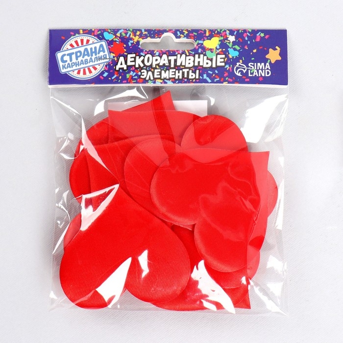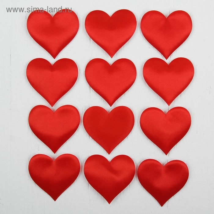 Сердечки декоративные, набор 12 шт., размер 1 шт: 6,5×5 см, цвет красный