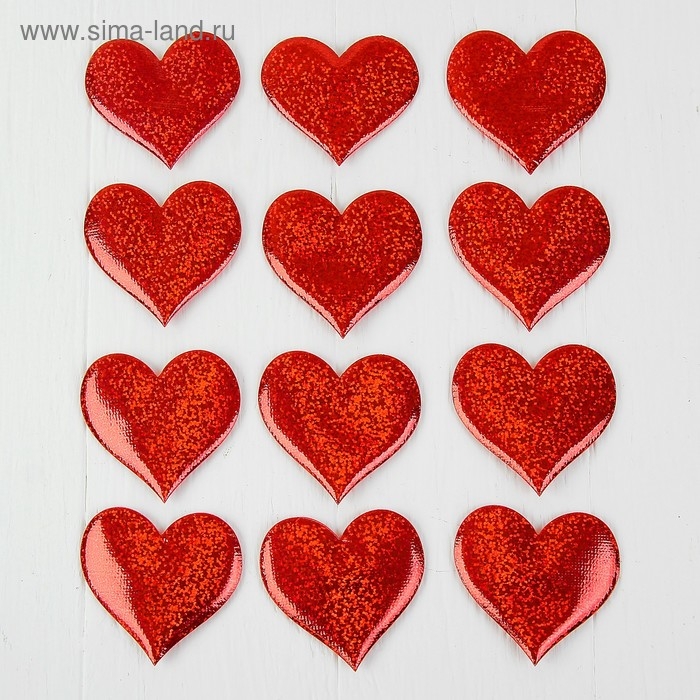 Сердечки декоративные, набор 12 шт., размер 1 шт: 6,5×6 см, цвет красный