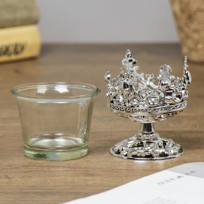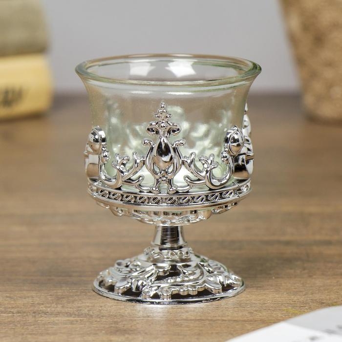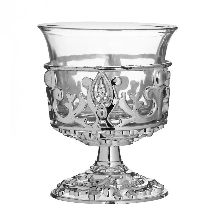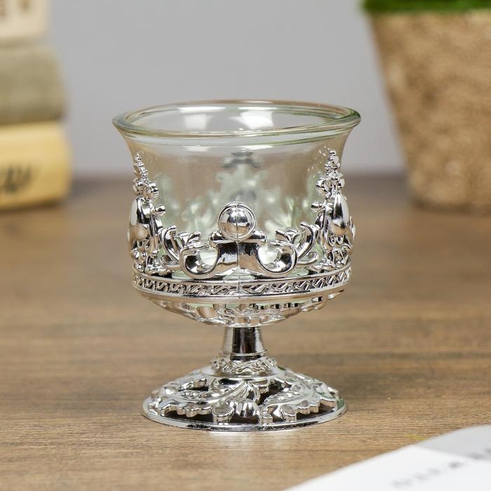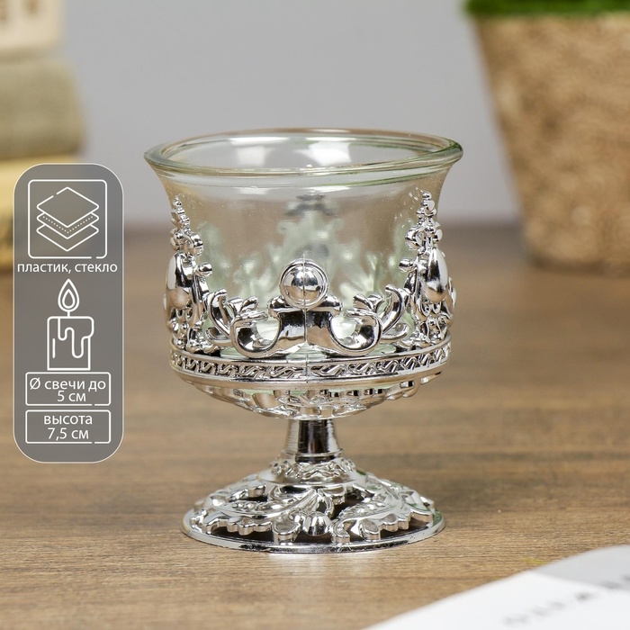 Подсвечник стекло, пластик на 1 свечу "Вьюнок" бокал на ножке серебро 7,5х6х6 см