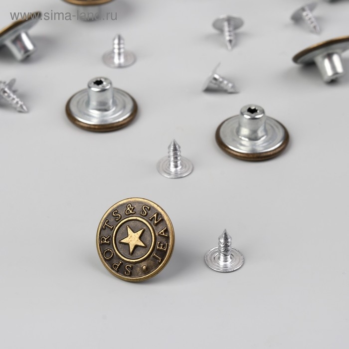 Набор джинсовых пуговиц, 17 мм, 100 шт, цвет бронзовый