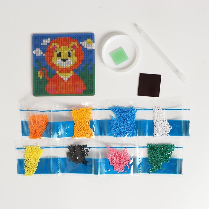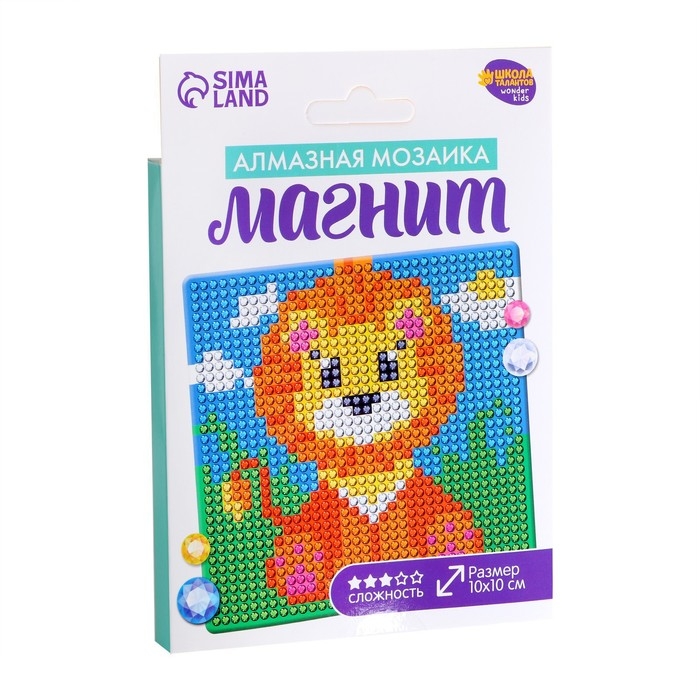 Алмазная мозаика на магните с полным заполнением для детей «Львёнок», 10 х 10 см