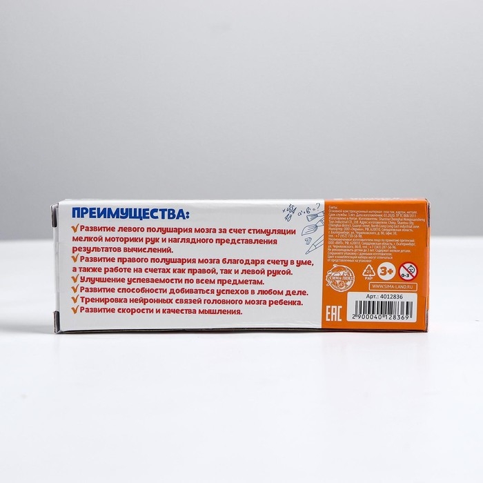 - Развитие левого полушария мозга за счёт стимуляции мелкой моторики рук и наглядного представления результатов вычислений.