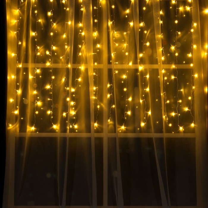 Гирлянда «Занавес» 1.5 × 1 м, IP20, прозрачная нить, 180 LED, свечение тёплое белое, 8 режимов, 220 В