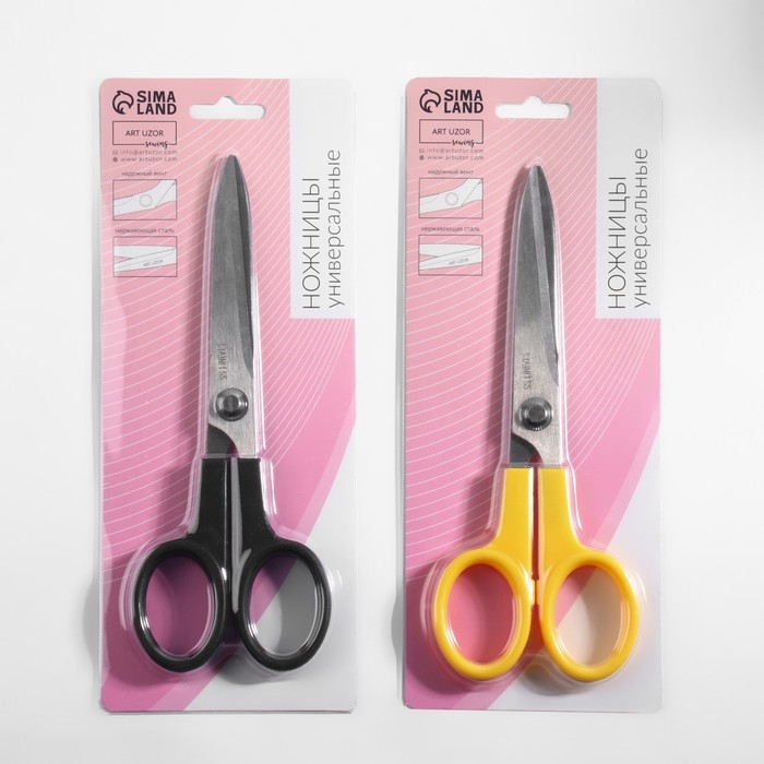 Универсальные ножницы подходят для работы с бумагой, картоном, полиэтиленом. Ножницы удобно лежат в руке, а их острые лезвия обеспечивают идеально ровный срез.