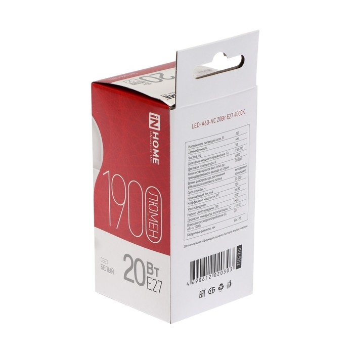 Лампа светодиодная IN HOME LED-A60-VC, Е27, 20 Вт, 230 В, 4000 К, 1900 Лм