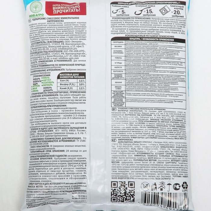 Нитрофоска – комплексное удобрение, основными компонентами которого являются азот, фосфор и калий (NPK-комплекс). Легкорастворимые гранулы, которые долго не слеживаются, при попадании в грунт распадаются на ионы и быстро усваиваются растениями.
