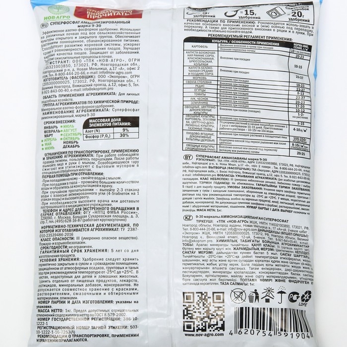 Удобрение минеральное Суперфосфат гранулированный, 1 кг