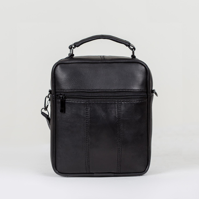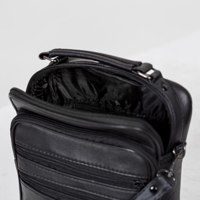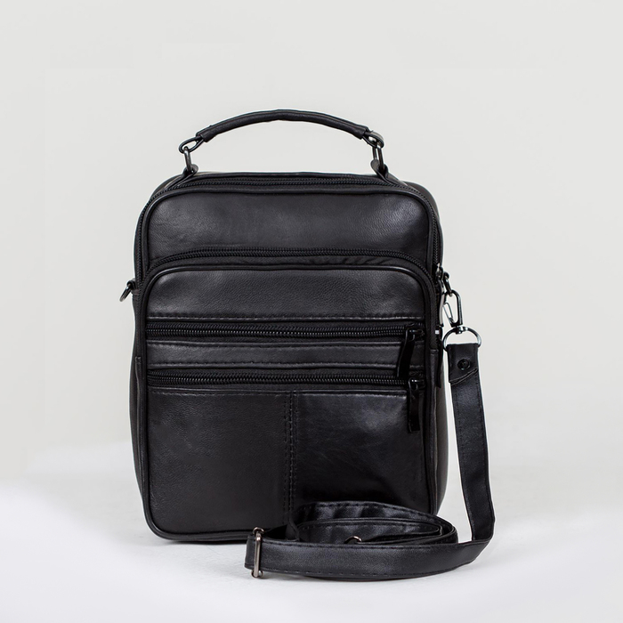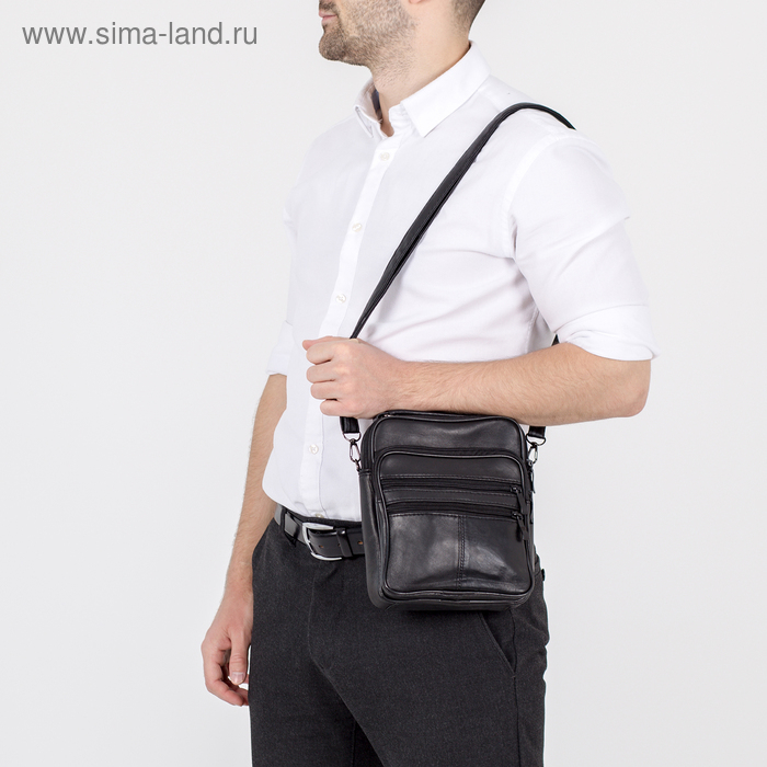 Сумка мужская на молниях, длинный ремень, цвет чёрный