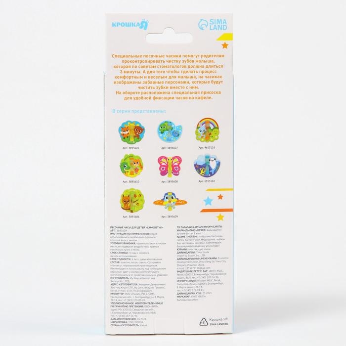 Песочные часы детские для чистки зубов на присоске «Самолётик», 3 минуты, виды МИКС