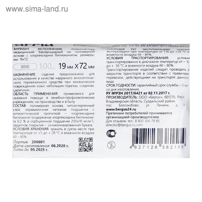 Лейкопластырь "Берегиня", бактерицидный, полимерный, 100 шт, 19х72 мм