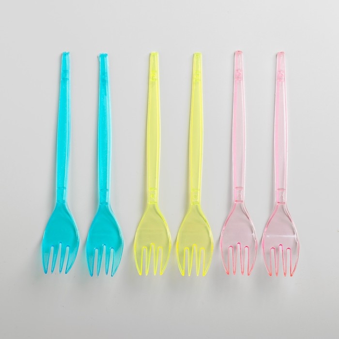 Вилки пластиковые, набор 6 шт., цвета МИКС