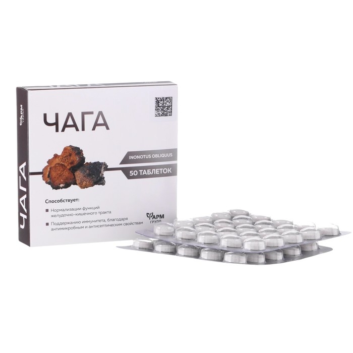 Чага при язвенной болезни и гастрите, 50 таблеток по 500 мг.